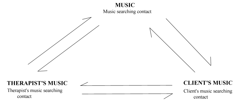 The music, produced by the therapeutic relationship, becomes an entity in the Music Therapy room. The relationship between the therapist´s music and the client´s will bring another entity. The three agents (therapist-music-client) look for contact and form the "TRIANGLE OF CARPENTE & BRANDALISE"[9].