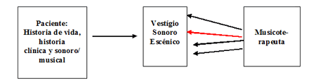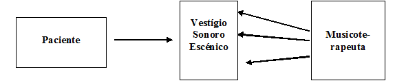 Partiendo de autores de la musicología contemporánea como John Rink y José Bowen, que consideran el performer no como un simple ejecutante, sino como el narrador de las ideas del compositor, de un mensaje expresivo (Rink, 2003) y de alguien “que está comprometido tanto en la comunicación de un trabajo, como en la expresión individual” (Bowen, 2003, p. 425), entiendo el paciente, en la musicoterapia interactiva, como el narrador musical de su[s] historia[s]. Así, el paciente es el autor de una producción que dejará un vestigio, a través del cual un sentido puede ser comunicado. Cabe resaltar que este vestigio tiene una naturaleza polisémica. De esa forma, la tarea del “receptor” (musicoterapeuta) es analizar, interpretar y [re]construir un sentido, entre los muchos por él recibidos. Eso solo será posible partiendo del análisis del vestigio y aún considerando, tanto los procesos de producción (del paciente), como los de recepción (del musicoterapeuta).