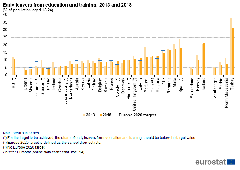 Eurostat. (2019). Early leavers from education and training. https://ec.europa.eu/eurostat/tgm/refreshTableAction.do?tab=table&plugin=1&pcode=t2020_40&language=en.