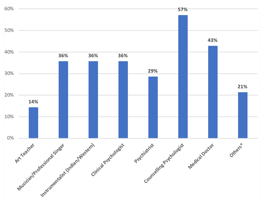 Note. *Includes “Tabla player,” “creative art therapists,” “interventionists at school/institute”